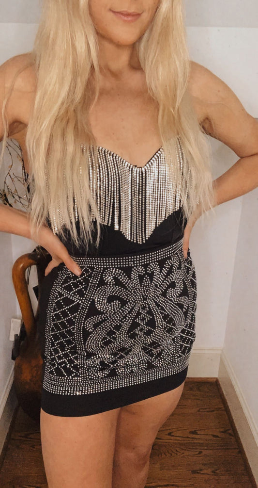SETTLE ME DOWN RHINESTONE SLEEVE MESH BODYSUIT